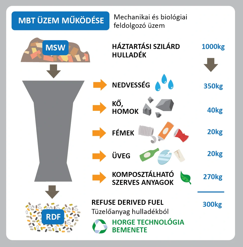 A hulladéktelepen működő RDF (Refuse Derived Fuel) előállító üzem alapanyaga a vegyes háztartási hulladék. Ebből eltávolítják az újrafelhasználható és lebomló komponenseket, és a nem éghető anyagokat. Ami marad, az egy másodlagos tüzelőanyag ún. RDF üzemanyag besorolású keverék. Minősége változó, mert függ a bevitt hulladék összetételétől. A mi technológiánk ezt az RDF-et használja és alakítja át szintézis gázzá